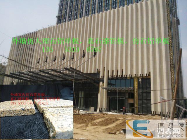 仿石铝单板是一种装饰效果酷似大理石、花岗石。主要采用各种颜色的天然石粉配制而成。真石漆铝单板装修后的建筑物,具有天然真实的自然色泽,给人以高雅、和谐、庄重之美感。适合于各类建筑物的室内外装修。特别是在曲面建筑物上装饰,可以收到生动逼真,回归自然的功效。真石漆具有防火、防水、耐酸碱、耐污染。无毒、无味、粘接力强,永不褪色等特点,能有效地阻止外界恶劣环境对建筑物侵蚀,延长建筑物的寿命,由于真石漆具备良好的附着力和耐冻融性能,因此特别适合在寒冷地区使用。真石漆施工简便,易干省时,施工方便等优点。仿石铝板的优势铝合金板材超强的造型能力与天然石材独具的豪华稳重、端庄艺术的艺术效果相结合,使得仿石铝板具备以下优势:轻质安全仿石铝板采用优质铝合金作为基材,表面涂装以天然花岗石碎粒、优质硅丙乳胶液和铝板专用弹性助剂制备的漆膜。自重轻、不会改变墙体负重的力学状况,不论安装还是使用,都非常安全和轻便。施工简便仿石铝由工厂预制装配幕墙构件,现场只需采用金属幕墙通用的干挂施工即可完成,施工过程比石材更加安全和简便,施工周期更比干挂石材缩短不止一倍。造型丰富仿石铝板基材铝合金板所具有的易加工性能和天然花岗石碎漆膜涂层所具有的丰富选择性,能够轻易制造出天然石材所难以完成的各种复杂造型,最大限度的满足了建筑及造型的需要,能充分体现设计的创意,帮助设计师们更好的表达设计理念。造价经济仿石铝板的材料成本、安装造价和翻新费用之间低、是天然石材所望尘莫及的、大大减低了业主的经济负担。根据外墙饰面砖工程及验收规程JGJ的有关规定,水泥基粘结材料符合现行业标准陶瓷墙地砖胶粘剂JC/T547的技术要求并应按现行行业标准建筑工程饰面砖粘结强度检验标准JGJ110的规定,在实验室进行制样检验粘结强度不得小于0.6MPa。并且明确要求不得采用有机物作为主要粘结材料。仿石铝板仿石层的粘结强度达到3.7MPa为仿石面层的安全性能提供了绝对保证。